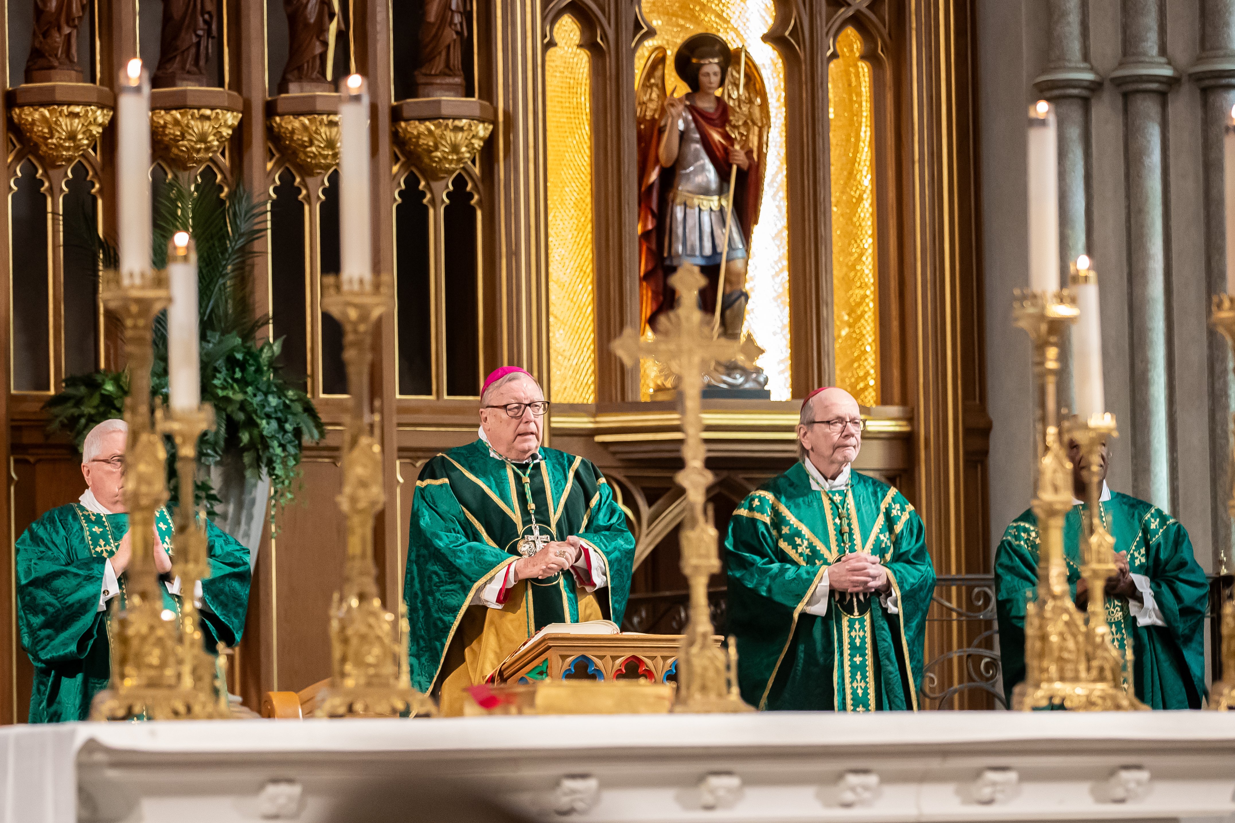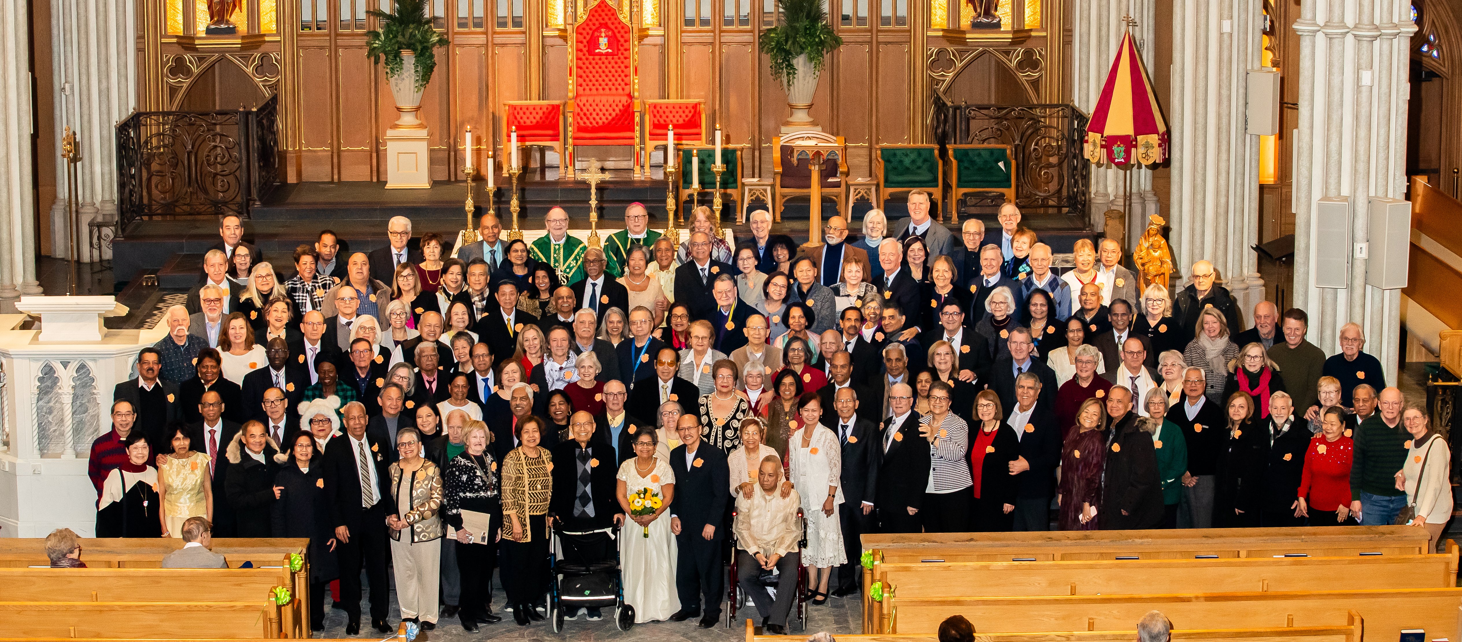 Over 1,000 family members and friends of honoured couples attended the celebration in the downtown cathedral basilica.  The Most Rev. John Boissonneau, Auxiliary Bishop of the Archdiocese of Toronto celebrated Mass, with Auxiliary Bishop Robert Kasun concelebrating. In his homily Bishop Boissonneau spoke about the importance of the commitment to the sacrament of marriage, a shining example to the world: